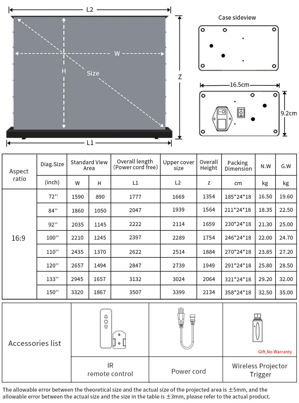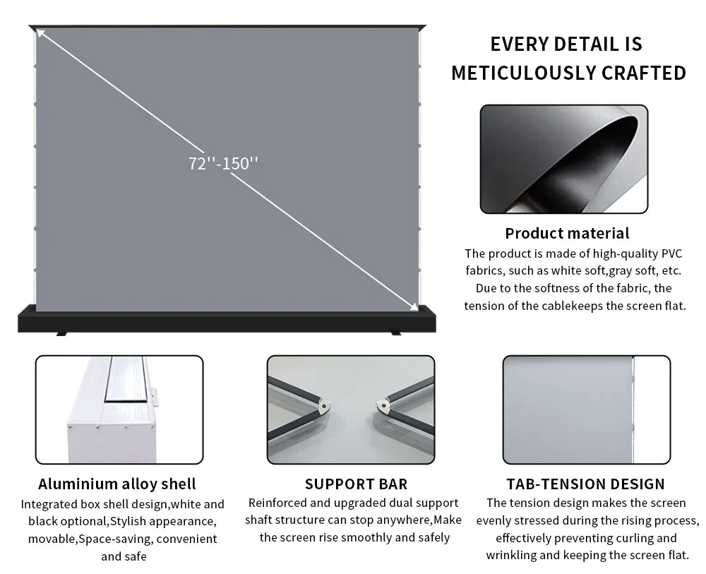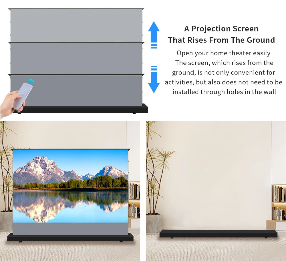 72-150 inch Electric Floor Rising ALR Black Diamond Projection Screen for Normal Projector