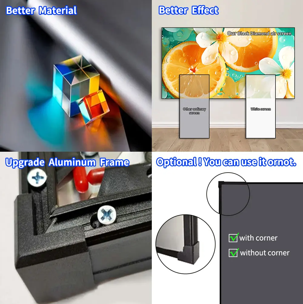 Fixed Frame Black Diamond Projection Screen for Normal/Long Throw Projector